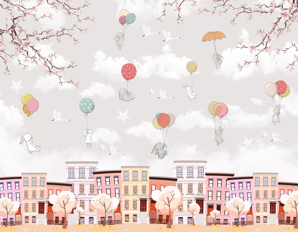 Fototapeten Bunnies Over a Pink City är ett sött och romantiskt dekorativt element som kommer att ge din interiör mysighet och mjukhet. Målningen föreställer söta kaniner som svävar över en pastellrosa stad och skapar en magisk atmosfär.