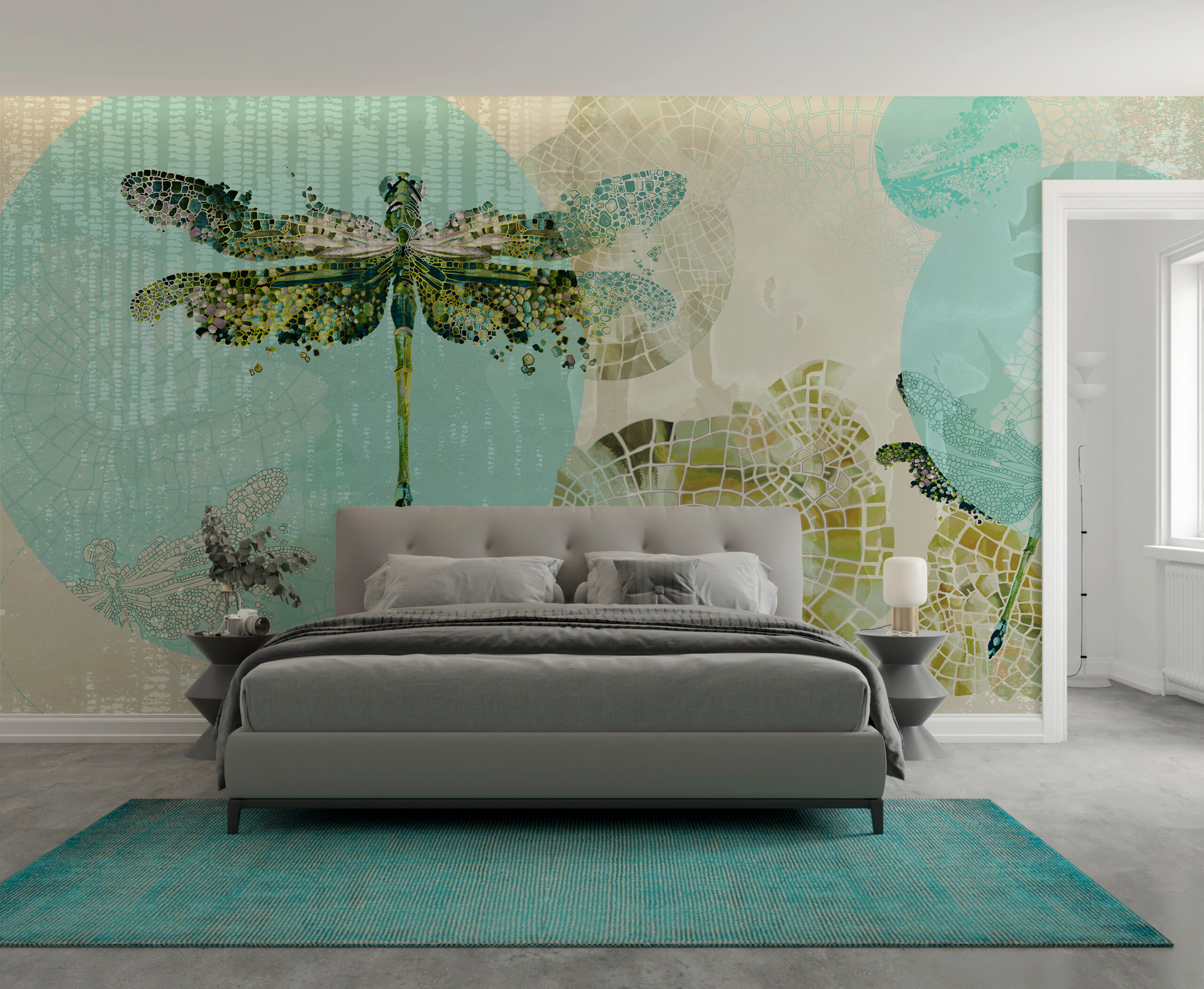 Stil: Denna väggmålning är perfekt för moderna och minimalistiska miljöer och ger dem en unik karaktär och speciell charm. Den ensamma trollsländan på bilden är det perfekta motivet för den som uppskattar enkelhet och subtilitet.