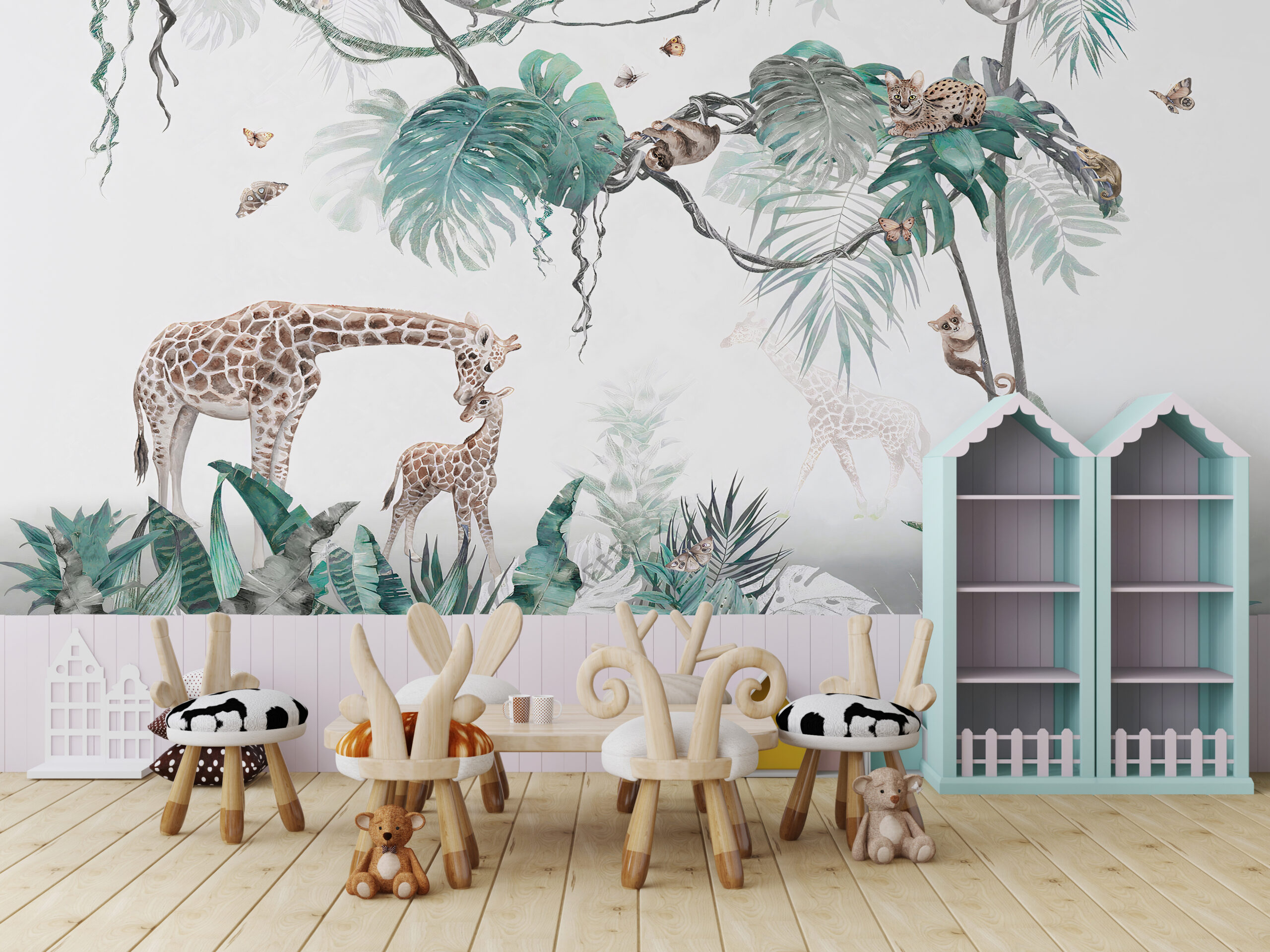 Denna vackra väggmålning är det perfekta sättet att skapa en fantastisk atmosfär i alla rum. Illustrationen föreställer vilda djur i deras naturliga miljö och kommer att glädja natur- och djurälskare.