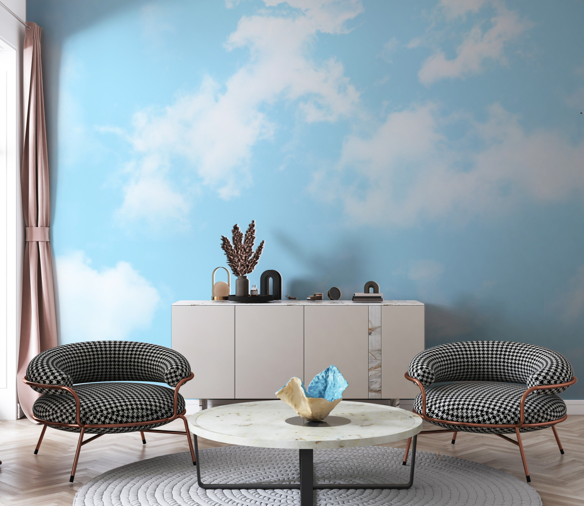 Drömmer du om en avkopplande utsikt över en blå himmel med vita fluffiga moln? Denna väggmålning är gjord just för dig! Tack vare det realistiska trycket och det högkvalitativa materialet kommer det att kännas som om du kan röra vid himlen.