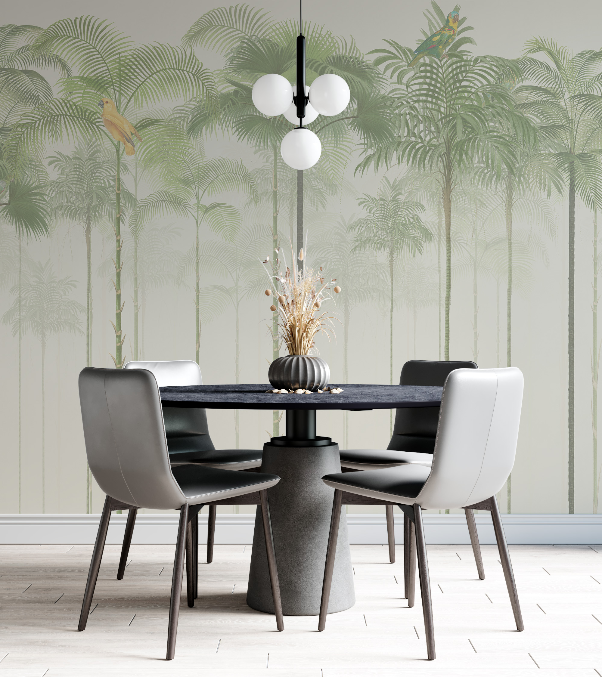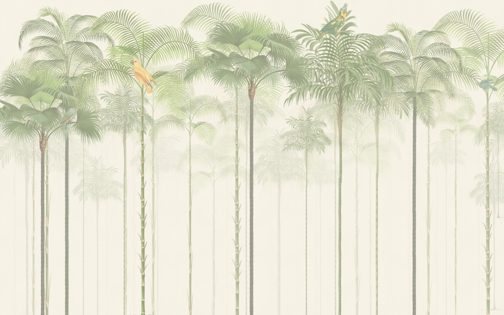 Väggmålning Papegojor på palmer