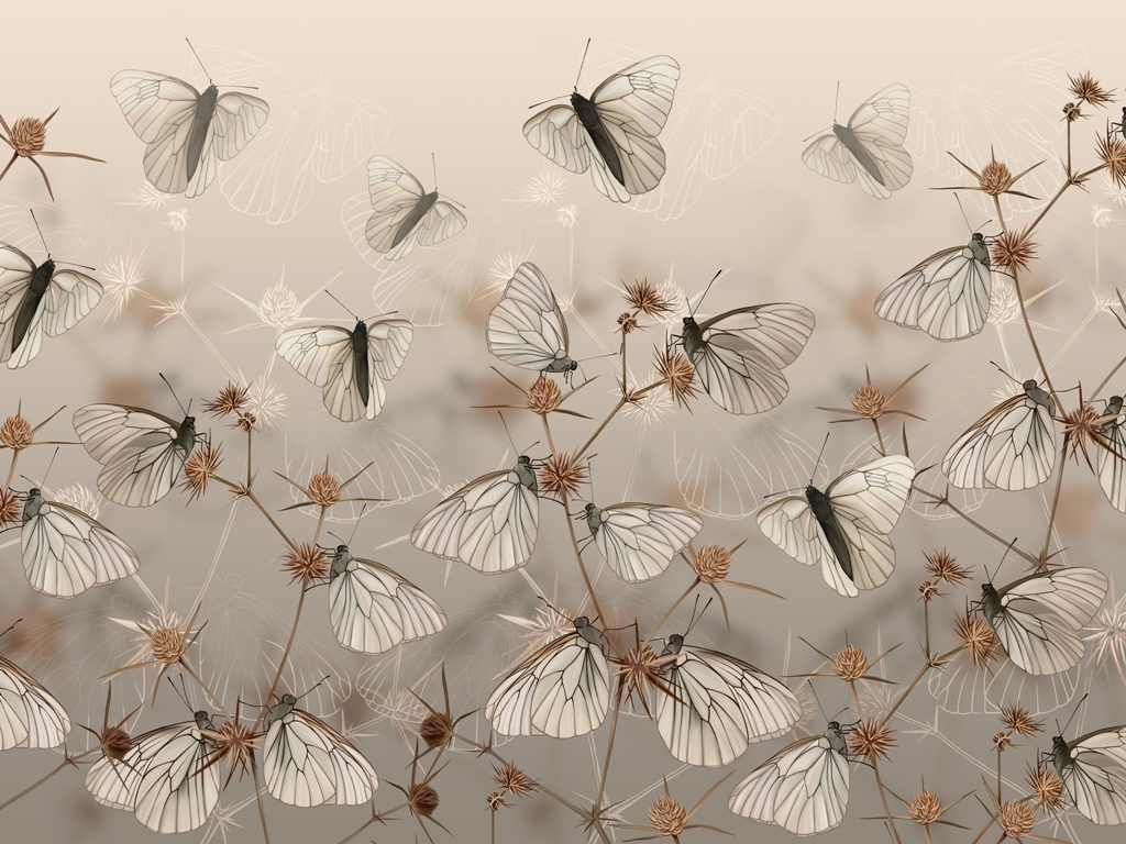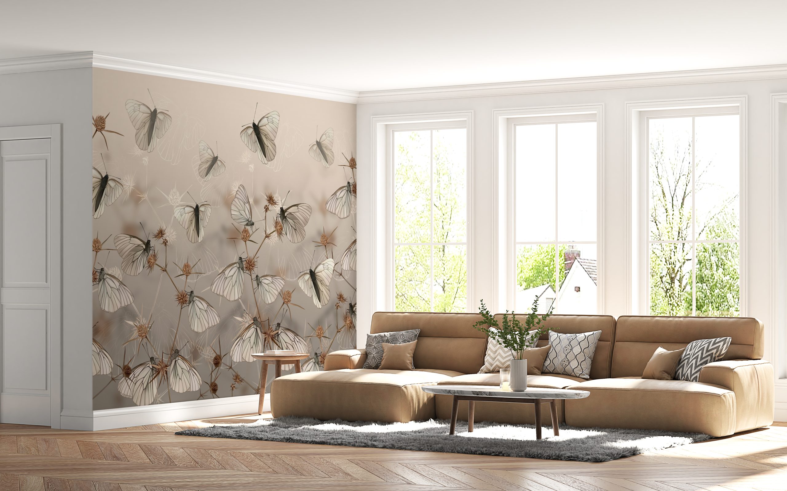 Njut av naturens skönhet i ditt eget hem med White Butterflies väggmålning!